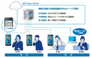 電話帳をグループ内で共有し、外出先からでも社内や取引先の連絡先を確認できます。また、連絡先や発着信履歴など顧客情報を端末に残さず利用できます。